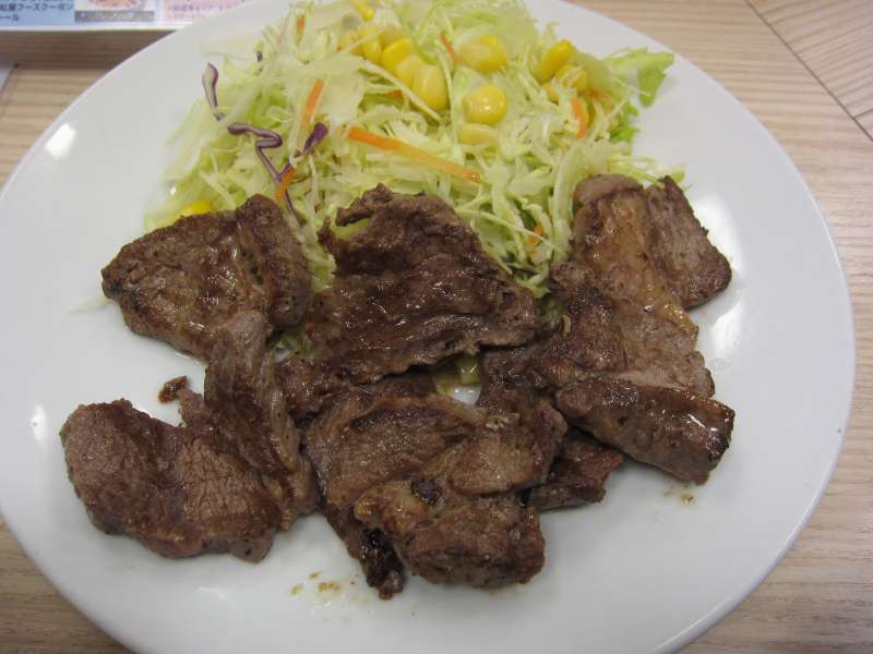 今回は新メニュー、牛肉と野菜のジンギスカンダレ炒め定食\630を食べてみました。牛肉とキャベツ、ニンジン、タマネギなどが炒められています。タレは醤油ベースですがピリッと辛みを感じるもの。しっかりとご飯がすすみます。ボリュームもあってお腹も満足でした。 (11.4) |