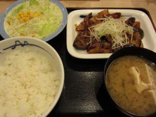 今日は久々に再度売り出された豚と茄子の辛味噌炒め定食\590をいただいてみました。秋になると出てきますね! ぶつ切りにされた茄子は柔らかく辛味噌を絡めると本当にご飯が進みます。肉もそれなりにあってボリュームたっぷりです。ご飯、大盛りにすればよかったかな?ごちそうさまでした。 (14.9) |