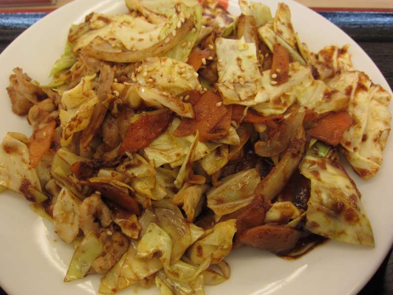今日は新しいメニュー、麻婆茄子定食\580を食べました。麻婆茄子定食ができた代わりに豚と茄子の辛味噌定食はなくなったようです。 メインの麻婆茄子は麻婆ソースの中にぶつ切りの茄子が浮かんでいます。麻婆ソースには挽肉と刻みネギなどが入っています。ソースはけっこう辛めです。麻婆と言えば山椒ですが、唐辛子の辛さのように思えます。茄子は柔らかく、しっかりと味が染みています。挽肉の入った麻婆ソースをご飯にかけて食べると、ご飯がすすみました。 (10.2) |