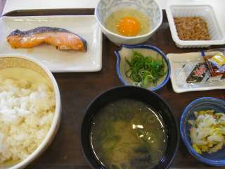 今回はとん汁鮭納豆朝食\550を食べました。定番の納豆、玉子、海苔にさらに鮭ととん汁がついたものです。納豆と玉子を混ぜてご飯にかけ、さらに鮭ととん汁。かなりボリュームありますね。しっかりと満足した朝ご飯になりました。 (11.4) |