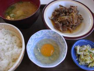 今日はとん汁牛皿定食\530を食べました。牛丼の具が皿に載せられ、ご飯ととん汁、お新香、生玉子がついた定食です。牛肉をご飯の上に載せてしまうと牛丼になってしまうんですが、白いご飯で肉を食べるのはまた牛丼を食べるのとは一味違います。玉子はどうやって食べるか、悩みます(^^ゞ すき焼きのように肉をつけて食べるか、玉子かけご飯にするか?結局玉子かけご飯にして食べました。 (09.4) |