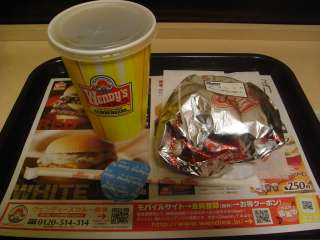 ウェンディーズが無くなるってことで、店は名残を惜しむ人でいっぱいだそうですが、実際たくさんの人で賑わっています。そのためか、メニューの一部は売り切れだそうです。ほとんどハンバーガー類を食べない私は、チーズバーガークラシック\290とアイスコーヒーM\220を注文しました。 |