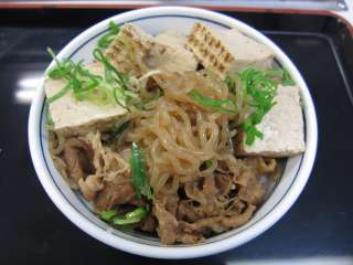 今回は牛鍋丼に豆腐しらたき\90の追っかけ小鉢を追加しました。焼き豆腐が4個ほどとしらたき、刻みネギが追加されます。ちょっとボリューム感増えていい感じかな。 (11.10) |