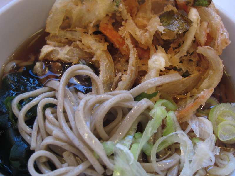 けっこう待って出来上がったかき揚げそば。立ち食いそばなのにどうしてこんなに待つんだろうと思いながら食べたのですが、このかき揚げ、注文があってから揚げているようで、熱いんです。やや小さめですが、できたてのかき揚げは美味しいです。蕎麦は更科のように白っぽいもの。立ち食い蕎麦としてはなかなか美味しい蕎麦でした。 (12.10) |