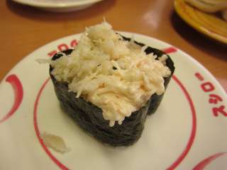 蟹かにマヨ軍艦はカニをマヨネーズであえた物を軍艦巻きにしたものです。子どもが喜びそうかな。 |