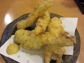 最後はいかげそ揚げ\238です。げその大きさに比べて衣の割合が大きいのですがね。この天ぷらとはいえないようなカリッとした衣がけっこう好きなんですね。 (14.6) |