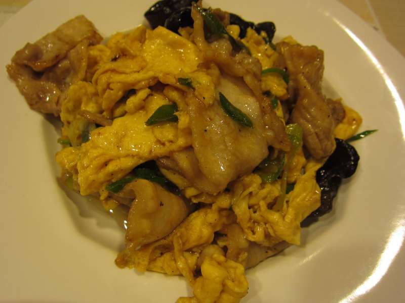 で何食べようかとメニューを開きますが、やはり多種多様ですね。何を食べようかと迷ってしまいます。でもよく見ると、やすい中華系ファミレスという位置づけだと思っていたんですが、定食にしようとするとそれなりのお値段になってしまいますね。王将の方が安いと思いました。結局選んだのは、豚肉とキクラゲ玉子炒め\549にご飯とスープ、半餃子の組み合わせの餃子・ごはんセット\389を付けて\938となりました。 |