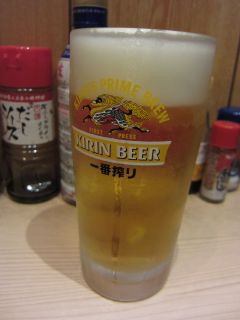 何だか仕事に疲れて…と、いつもの言い訳をしながら最近お気に入りの晩杯屋へね! まずは生ビール¥で一人乾杯!冷えてて最高です! |
