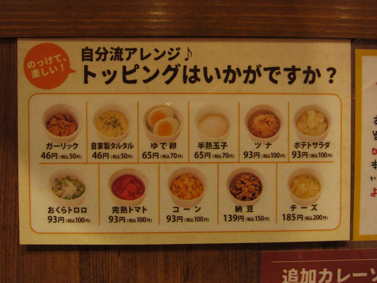 さて、メニューを見るとビーフ、ポーク、ハッシュドビーフと3つの味を中心にトッピングでバリエーションを出しているようです。ここら辺はチェーン系のカレー店共通なんでしょうかね?でも、基本のカレーにトッピングを追加していくと結構なお値段になってしまうんですがね… で、結局選んだのは、牛すじカレー\700です。 |