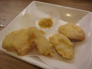 続いて鶏続きになっちゃった、鶏天カレー塩添え¥200ね。カレー塩って初めてだと思うけど、なかなか美味しいね。カレーのピリ辛さが、鶏天に合うね。 |