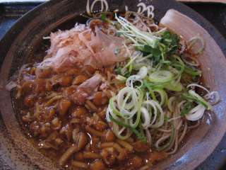 ぶっかけそばになめこ、かつお節、かいわれ、刻みねぎを載せたものね。冷たいそばの心地よさになめこのスルスルッという喉ごしがたまりませんね。美味しかった!ごちそうさまでした。 (21.5) |