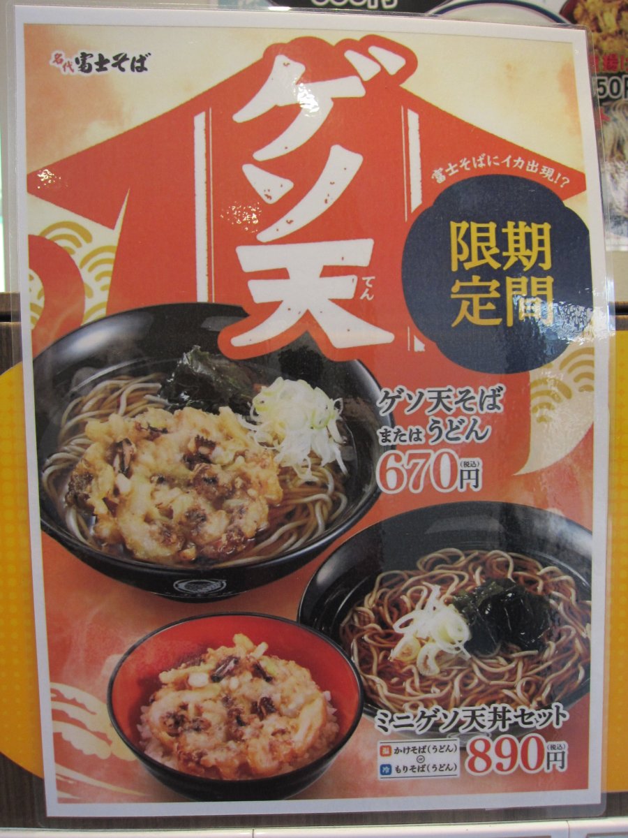 今回寄ったのは期間限定のゲソ天そばがあったから。でも、¥670はかなりお高めですね。 |