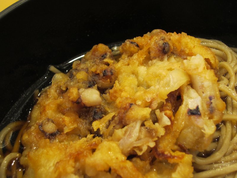 運ばれた蕎麦は、やや小さめのゲソ天が載ったもの。 |