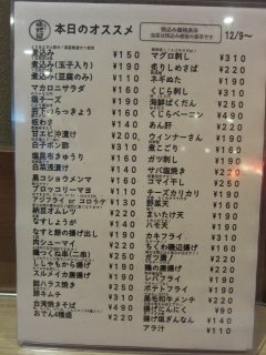 御徒町をぶらぶらしていたら、ガード下に新しい店ができていたので、ついついね。 ここはひとり呑みには嬉しい店なのよ。だって、1人分にちょうどいい量の肴。だから、お値段も安いしね。メニューも豊富なのが嬉しいところ。 |