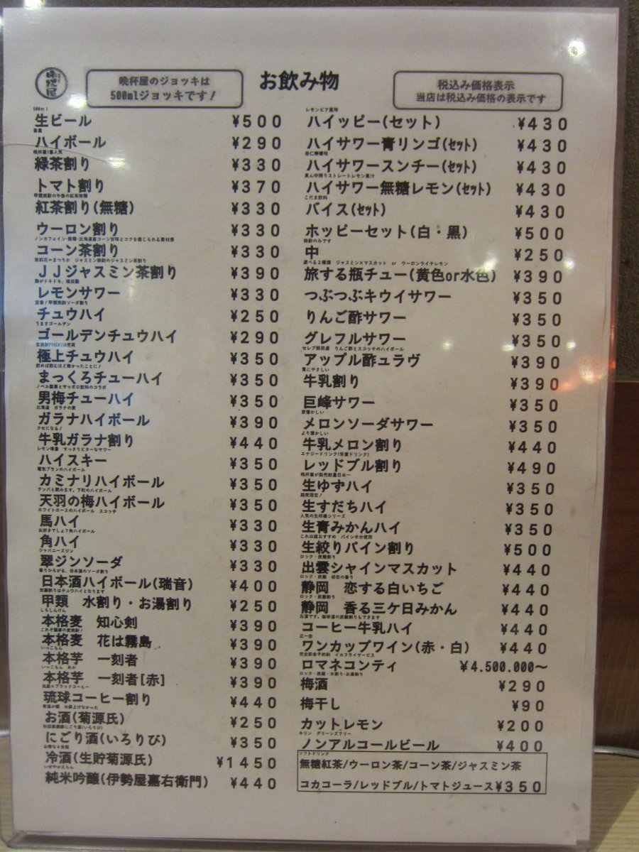まずは生ビール\500からだね。やはり、家呑みのビールもどきのヤツよりはるかにうまいね? それとも外呑みだからかな? |