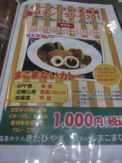 メニューは色々あるのですが、今回のお目当ては、まこまないカレー¥1000です。北海道では各地のご当地カレーを売り出しているのですが、せたな町ではせたなカレー。店ごとに海産物などの具を工夫したものだそうです。こちらのカレーはどんなカレーなんでしょうか? |