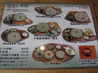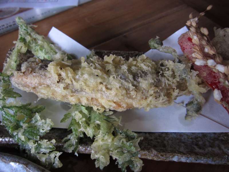 いろいろとあるメニューの中で何を食べようかと迷いましたが、今回は売りらしい岩魚天ぷらざるそば\1600をいただくことにしました。 |