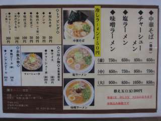メニューは醤油、塩、味噌と基本の3種を揃えています。今回は中華そば\650をいただくことにしました。 |