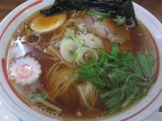 運ばれたラーメンは、チャーシューが2枚と海苔が2枚。そして、メンマ、刻みネギと半切り味玉、三つ葉が載っています。スープを啜ると、かなり強めに煮干しが利いたもの。とはいえ、そんなにクセがあるわけではありません。何となく、青森の中華そばを思い出してしまいました。 麺は自家製らしいのですが、ストレートの細麺。チャーシューは薄手ですが、しっかりと肉を感じるもの。味玉は味は染みこんではいませんが、まあいいかな?\650でこれだけ食べられれば納得ですね。ごちそうさまでした。 (16.10) |