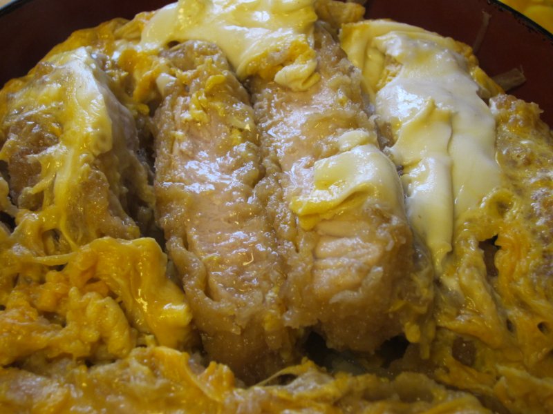 まずはかつを見ると、ちょい堅めに綴じられています。そして、メインの肉は… かなり分厚い! このお値段では考えられないほど。しかも肉は柔らかくて旨いんだよ。お得感たっぷりですよ。ただ、割下が少し甘めだったのは口に合わなかったけどね。ごちそうさまでした。 (25.11) |