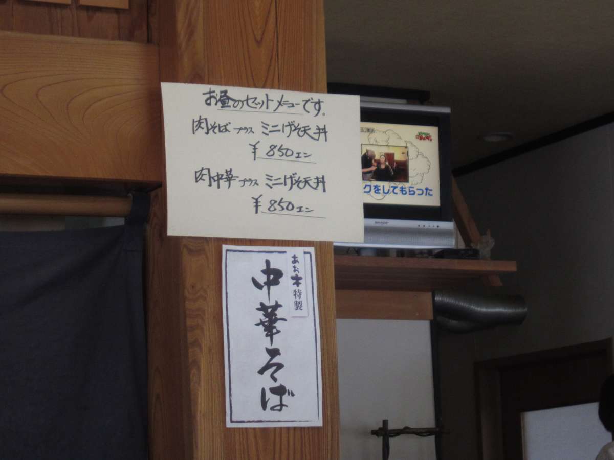 注文は迷うことなく、冷たい肉そば¥650にセットサービスのミニげそ天丼¥200を追加しました。 |