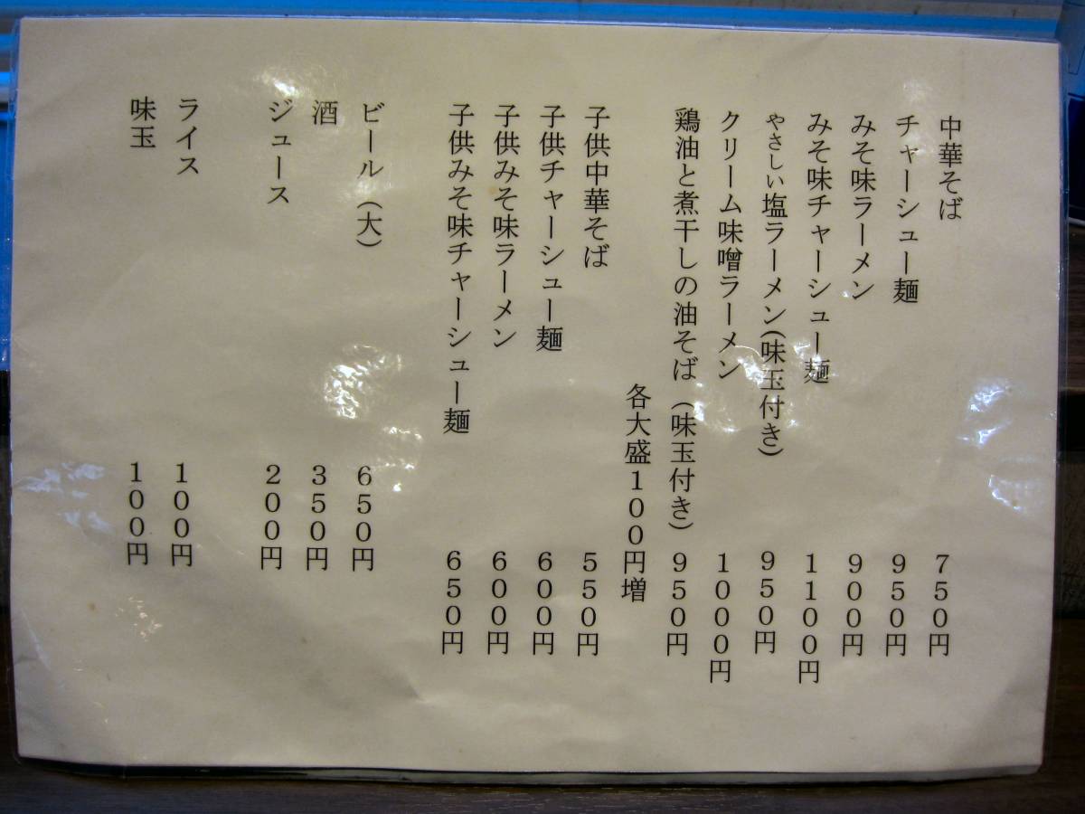 メニューは、醤油、塩、味噌と各種揃ってるだけでなく、子供ラーメンなる、小盛り?のメニューがそれぞれにあること。 今回は、醤油のチャーシュー麺\900をね。 |