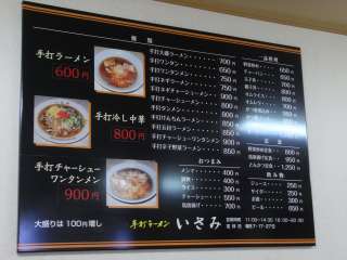 会津若松の中心、飲屋街の中にあるラーメン屋です。店の横には駐車場もあって車でも寄りやすいのですが、狭い路地の奥にある店なので、探しだし、中に入っていくのに苦労しました。店頭には手打ち蕎麦の店よろしく、ガラス張りの麺うちコーナーが設けられています。 |