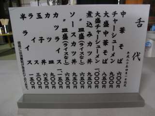 メニューは中華そばをメインに煮込みカツ丼、ソースカツ丼などもあります。カツ丼も食べたいと思いながらチャーシュー麺\900を注文しました。 |