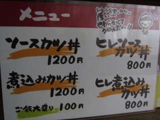 以前はカレーライスなどのメニューもあったんですが、カツ丼のみに絞ったメニューに変わってます。当然のことながら注文はソースカツ丼\1200ね。 |