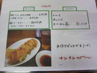メニューを見ると、塩、醤油、味噌が揃っています。そして喜多方では珍しく、売りという餃子まであります。迷ったあげく、塩ラーメン\600に餃子\400をいただくことにしました。 |