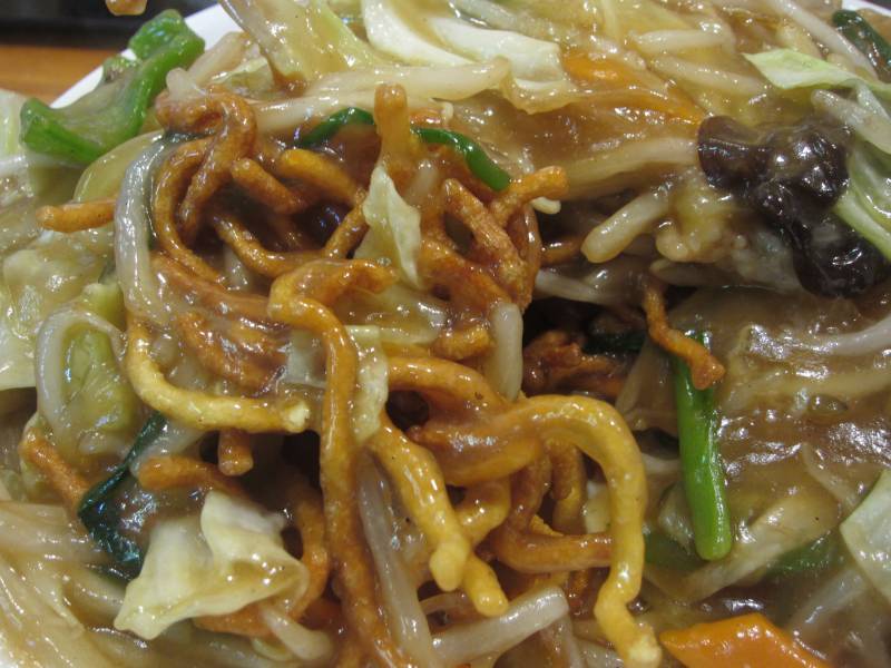 味つけは醤油系で麺は太麺。やや堅めで餡がかかってもフニャッとなりにくいタイプ。なので、食べきると顎が鍛えられるね。ただ味が濃くてね。最後はかなりしょっぱく感じてしまったよ。もう少し控えめの方が飽きずに食べきれるかな。とはいえ、どうにか食べきることができました。ごちそうさまでした。 (25.9)  |