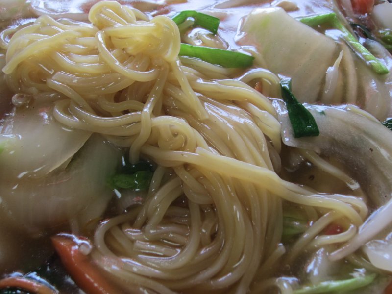 おお〜、白菜やにら、にんじん、もやし、しめじなどの野菜になるとなどが入った餡がたっぷりと盛られたもの。寒き日にはありがたいラーメンだね。 でも、でも、「肉そば」という割に肉があまりないのよ! 「肉」メインのラーメンかと思ってたけど、これは肉入り野菜あんかけそばって感じだね。そこがかなり残念だったな。ごちそうさまでした。 (26.2) |