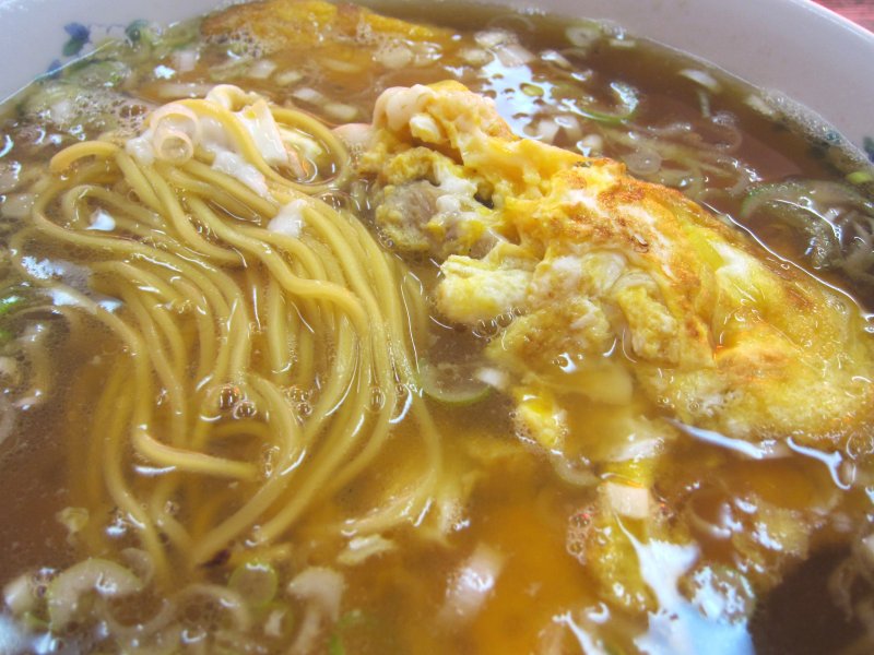 少し待って運ばれた天津めんは、丼いっぱいに広がったかに玉が載ったもの。 表面はけっこう焼けてるけど、中はふんわりと仕上げたもの。歯応えがいいね。玉子の中には椎茸とネギは見つけられたけど、かにはどうかな?入っていないのかも… でも味は良くてボリュームもあって美味しかったな。ごちそうさまでした。 (25.12) |