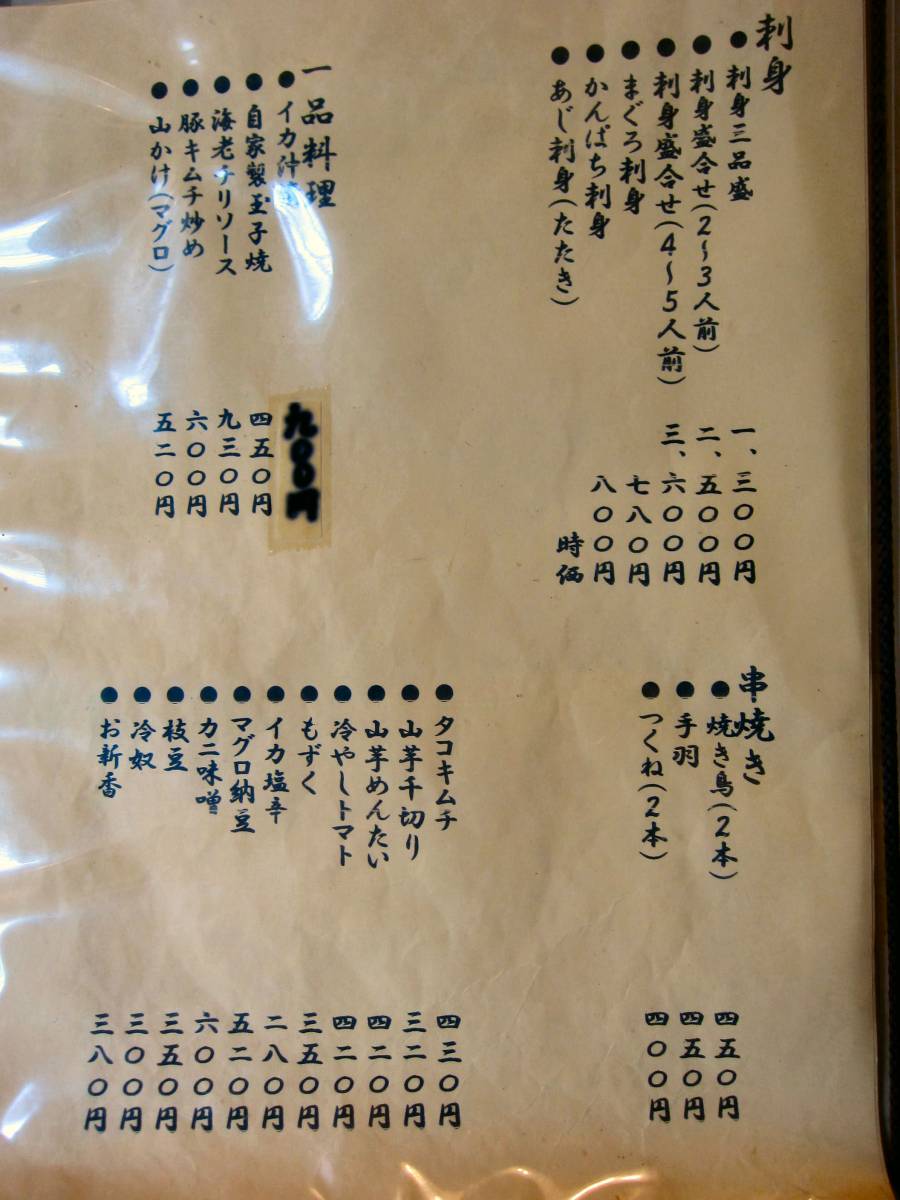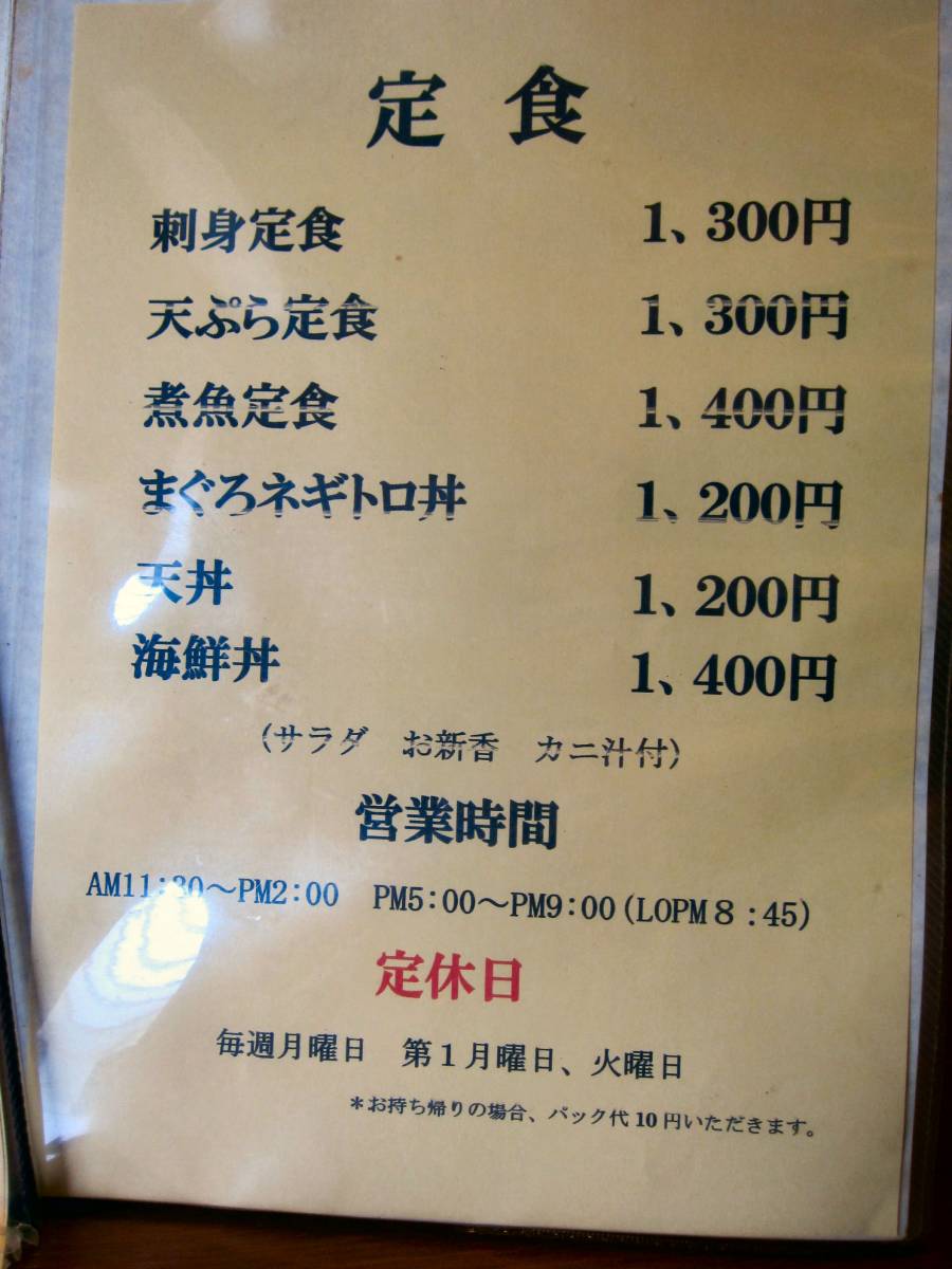 メニューは和食というか居酒屋ぽいメニューが並んでますが、ランチメニューはお手軽な定食が並んでます。今回はhiroが海鮮丼\1400を友人は刺身定食\1300をいただくことにしました。 |