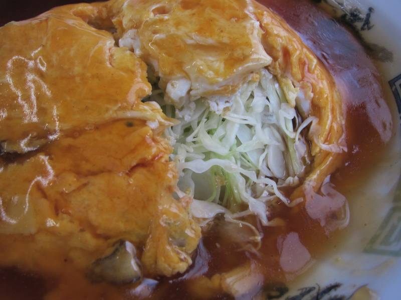 今日は自由軒で蟹玉定食\910をね。 運ばれた定食はかなり大きな蟹玉にラーメンスープと漬け物に冷奴の組み合わせ。  |