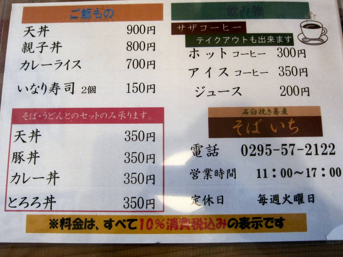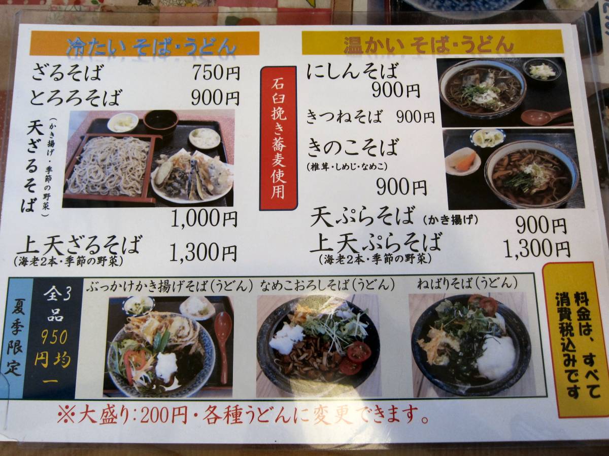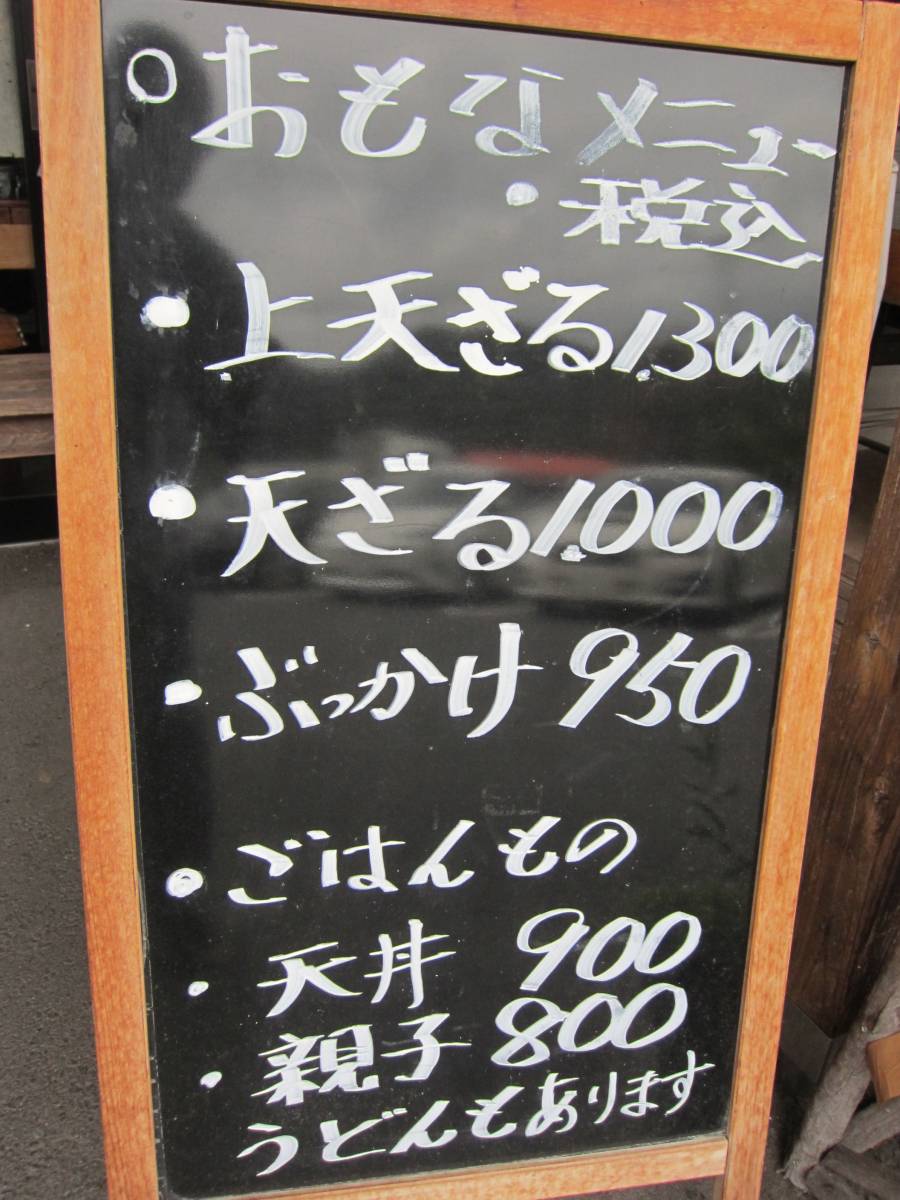 メニューは、温かいそば、冷たいそばをメインに少しご飯ものがあるって感じですね。今回は天ざるそば\1000をいただくことにしました。 |
