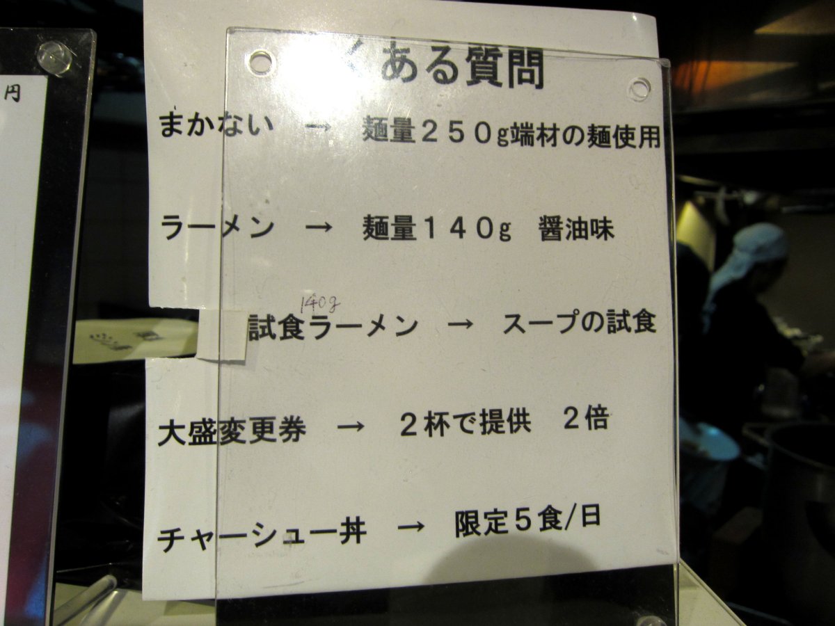 店名は、多分\250のラーメンから来ているのかな? さて、なんでこんなに安いのかは、店主さんの実家が製麺所だそうで、規格外や普通なら廃棄するような麺を貰ってきているからなんだそうです。他にも節電するなど色々と工夫されているそうです。 |