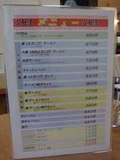 店はこぎれいにされていて気持ちよく食事をすることができます。メニューは醤油味と塩味のラーメンがメインで、あとはチャーハンがあるくらいです。今回は醤油味のラーメンと餃子のセットでちょっとお得なラーメン餃子セット\900を注文しました。麺は細麺と平打ち麺を選べるとのことだったので、細麺でお願いしました。 |