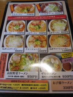 運ばれたラーメンは、チャーシュー3枚にメンマ、なると、刻みネギに背脂が浮かんだもの。 スープを啜ると、豚骨ベースかな?そして背脂のコクが出ています。麺は白河ラーメンのような手打ち?のちぢれ太麺。モチモチ感があります。チャーシューはバラ肉でかなり柔らかく煮込まれたもの。なかなか美味しいラーメンでした。ごちそうさまでした。 (21.8) |