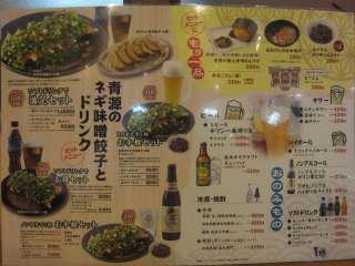 こちらの売りは味噌屋さんらしく、味噌を使った青源のネギ味噌餃子\460。もうひとつ、源ちゃん焼き餃子\330もありますね。水餃子もあるけど、焼き餃子だよね。 ということで、青源のネギ味噌餃子に源ちゃん焼き餃子に生ビール\500だよね。 で、注文したら、セットの方が安いからと、とりあえず1杯お手軽セット\930に源ちゃん焼き餃子\330を追加する形にしました。 |