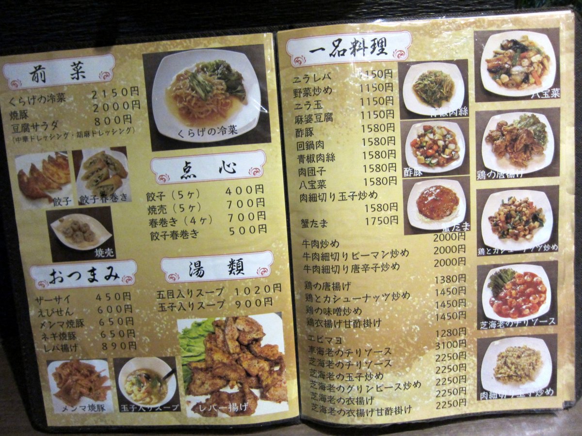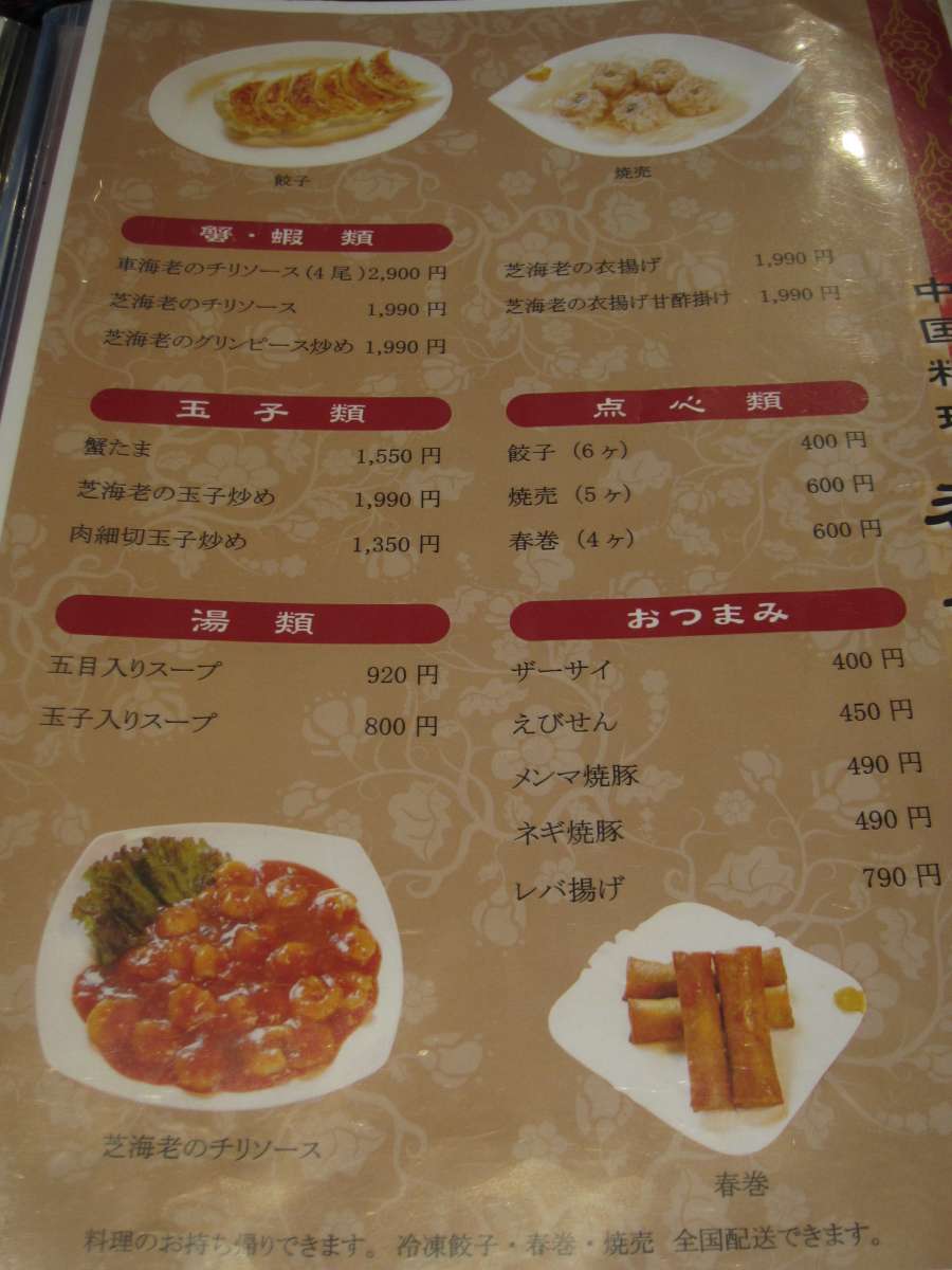 席に案内されメニュー見ると、やはり本格中華の店なので色々と揃っていますが、やはりちょいお高めですね。 |