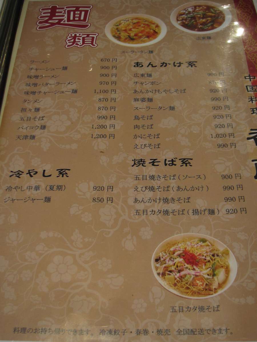メニューも以前と比べると数が減るなどかなり変わっていますね。もちろん、お値段が上がってるのは仕方ないかな。何食べようかと思ったけど、五目そば\1200にしました。 |