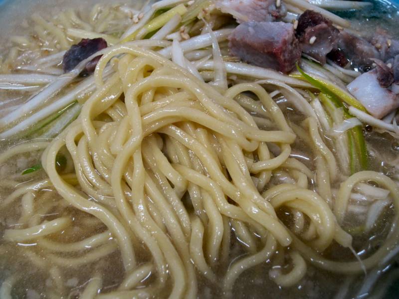 注文は入口の券売機で食券を買う方式。最近流行りの多機能式だけど、メニューガシンプルすぎるので一画面に収まってるのはありがたいですね。注文は当然の如く、ネギラーメン\930だね。味やアブラなどは普通でね。