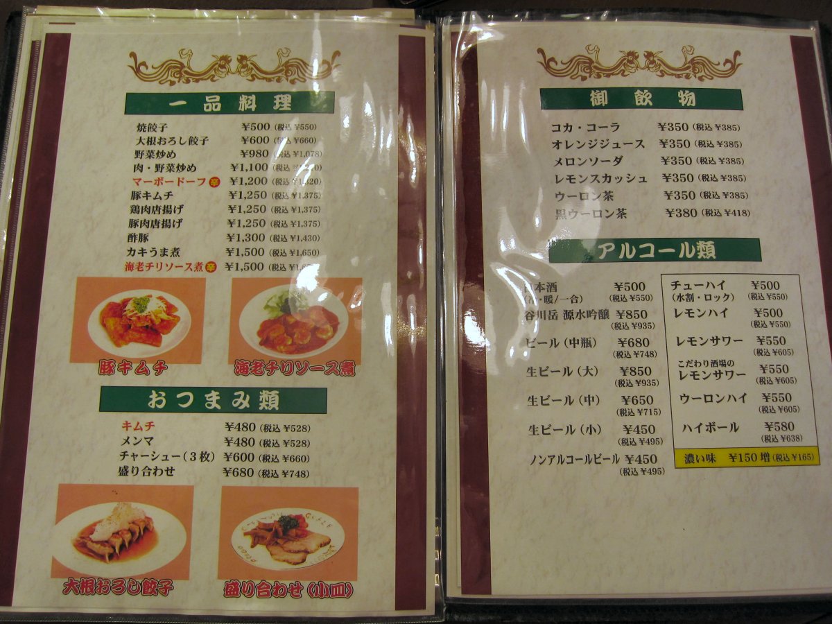 沼田I.C.から金精峠に向かってしばらく走ったところにある中華料理屋さんです。以前温泉仲間と群馬の温泉めぐりをしていた時、沼田に面白そうなラーメン屋さんがあると聞いて探したお店です。訪れてみると確かに変わったメニューが並んでいます。もちろん普通のラーメンや料理もたくさんあり、地元の方でとても賑わっているお店です。 |