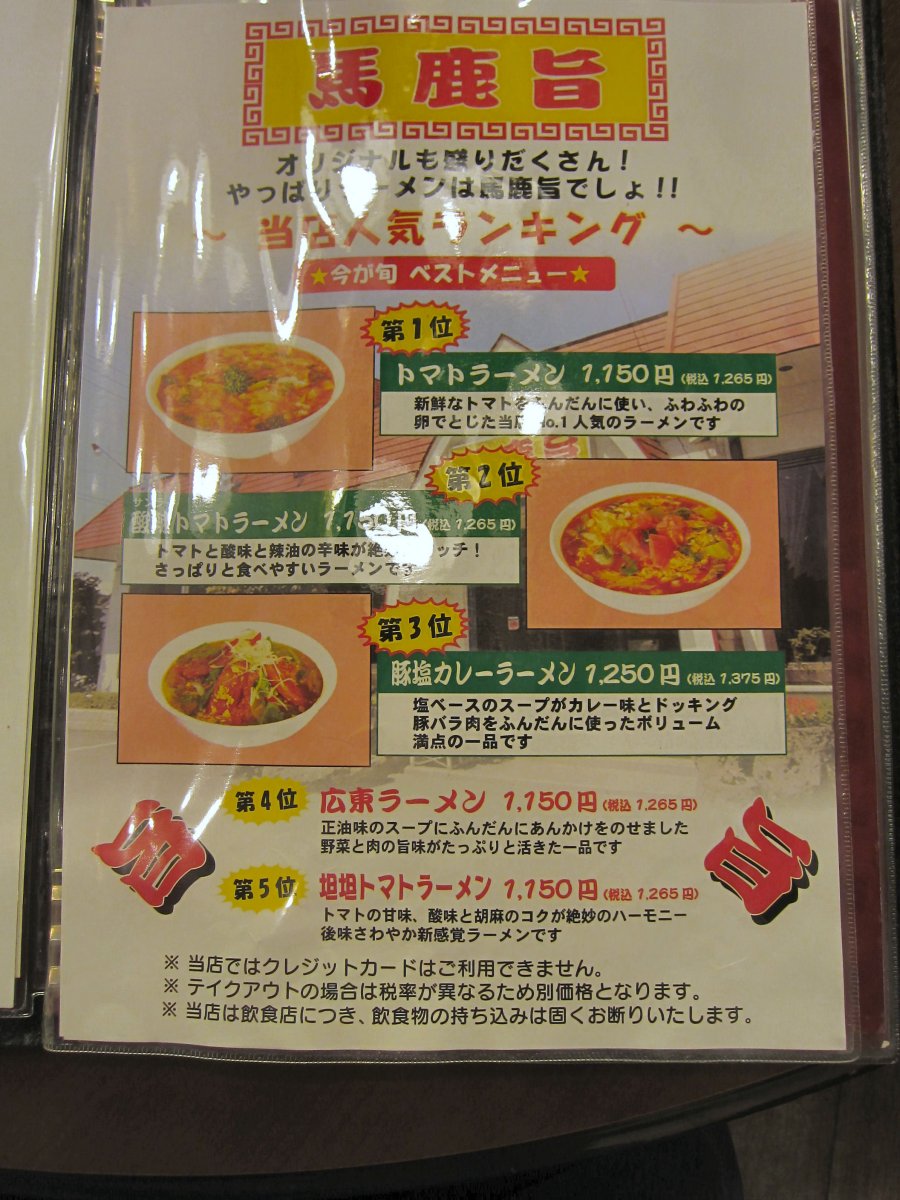 やはり、こちらの店はトマトラーメンメインなんですね。色々なバリエーション出しています。 |