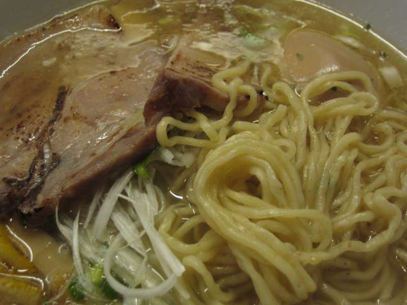 運ばれたラーメンは、チャーシューに穂先メンマ、味玉に白髪ネギなどが載ったもの。 まずはスープを啜ると、魚介系の中にしっかりと海老やカニの甲殻類のだしを感じます。アレルギーある人にはムリだね。でも、旨いのよ、これが!麺は自家製という中細ストレート。スープがよく絡んで美味しいんだけど、スープに負けないようにもう少し太い麺でもいいのかな?次は醤油だな。ごちそうさまでした。 (21.8) |