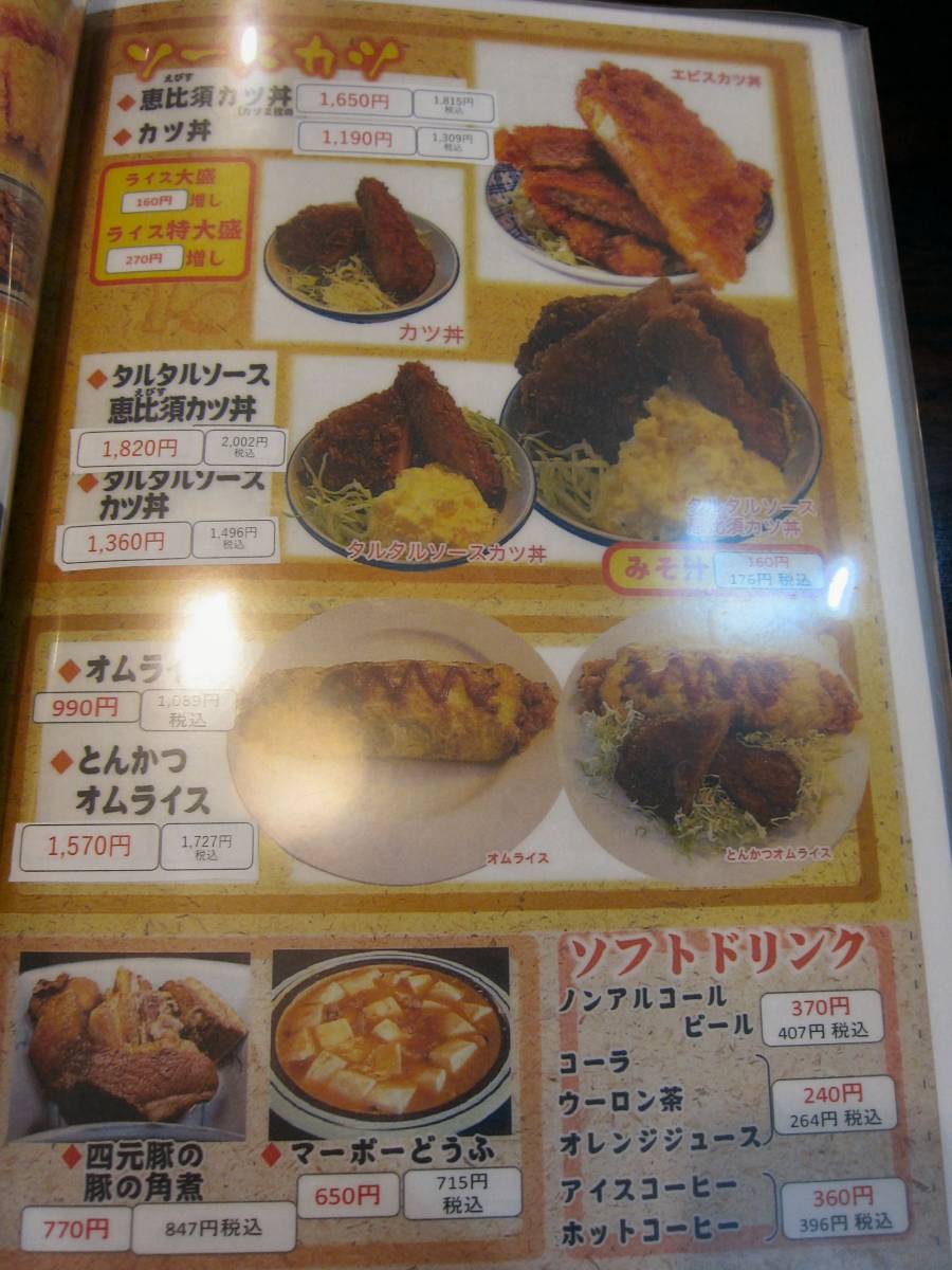 厚切りとんかつが売りのこちら。久しぶりの再訪です。 こちらは厚切りとんかつが売りだけど、ラーメンやオムライスに麻婆豆腐などもあり、何がメインなのか分かりませんね。 |