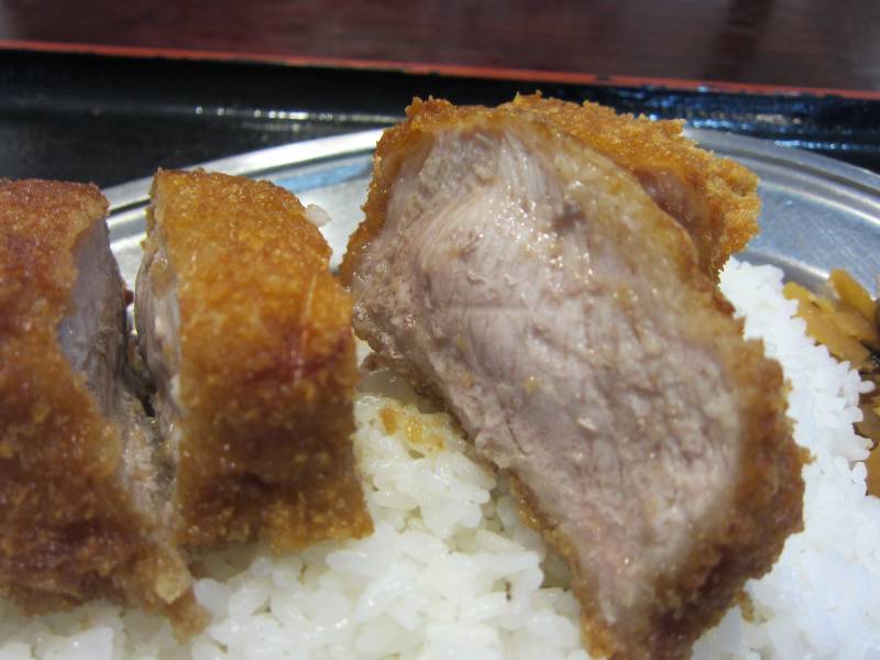 この分厚いかつは、会津のむらいと同じくらいかな。 かつはやや堅めの衣に覆われていますが、肉は柔らかく、肉を堪能することができます。美味し〜い! 残念なのは、ソースがかつにしかかけられていないこと。千切りキャベツにもかけて欲しいな。ごちそうさまでした。 (23.9) |