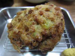 こちらも意外だった納豆かき揚げ\300。爆弾状というかボール型の納豆のかき揚げ。やや堅めだったのが残念かな?衣が堅いみたい… |