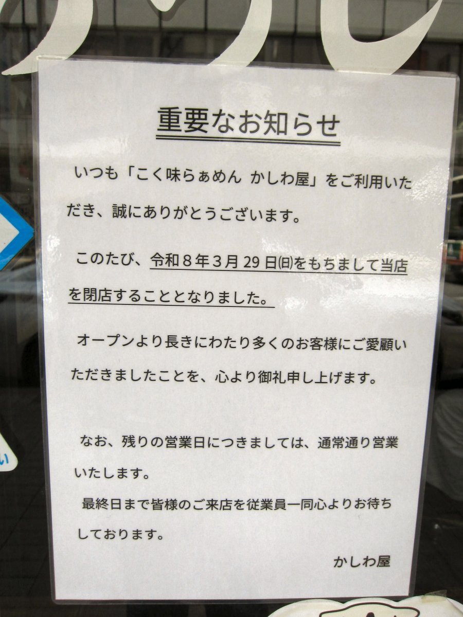 今日は3月で閉店するという、かしわ屋で最後のラーメンを食べにね。 |